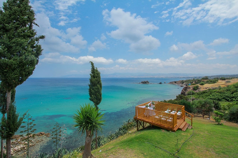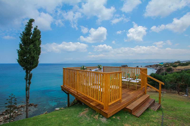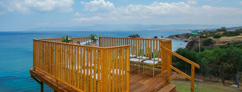 Crisscrossed with nature trails with romantic names like 'Aphrodite' and 'Adonis', and dotted with picnic sites, the area is one of the most beautiful places on the island. The raised wedding platform gives the impression of flying! Surrounded by a natural Mediterranean decor, the blue sea, blue sky and the beauty of the scenery, Aphrodite point venue will make your special day unforgettable!
